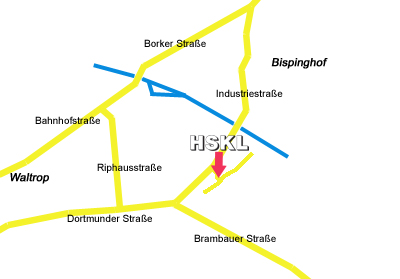 Von der Autobahnabfahrt Dortmund/Mengede biegen Sie links ab auf die L609 / Waltroper Str. Richtung Waltrop. In Waltrop angekommen biegen Sie an der 5. Ampel rechts ab auf die